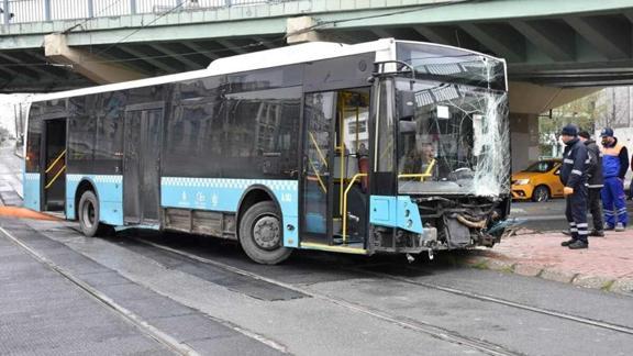 Şoförün direksiyon kontrolünü yitirdiği otobüs, tramvay hattının elektirk direklerine çarptı.