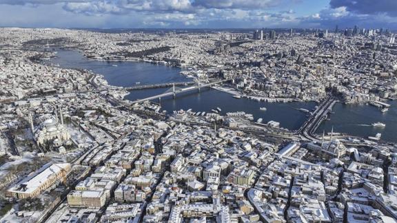 Soğuk ve yağışlı havanın etkisine giren mega kentin bazı bölgelerinde kar aralıklarla sürüyor.