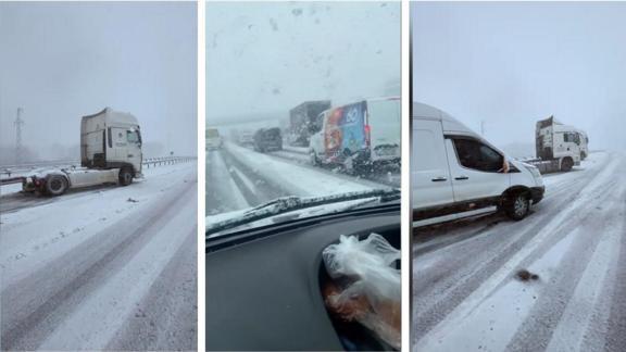 Şile Yolu Paşaköy mevkisinde seyir halinde olan bir servis minibüsü ile 2 tır, yolda biriken kar nedeniyle ilerleyemedi. Karla kaplanan yolda hareket etmeye çalışırken patinaj yapan araçlar, burada mahsur kaldı.
