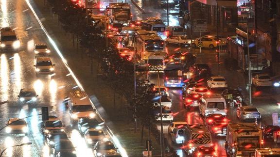 Öte yandan sağanağın etkisiyle bazı yollarda trafik meydana gelirken, otobüs duraklarında da yoğunluk oluştu.