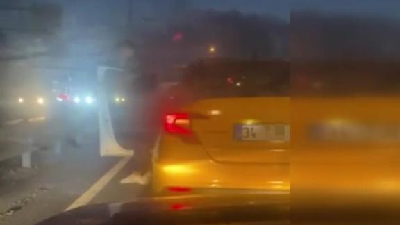 Olay, geçtiğimiz gün gece saatlerinde Arnavutköy yolu BİM deposu mevkiinde gerçekleşti. İddiaya göre bir taksi şoförü, seyir halindeki bir aracın önünü keserek durdurdu. Araçtan inen şoför, sürücüye saldırdı. O anlar otomobilde bulunan kişiler tarafından cep telefonu kamerasıyla kaydedildi. Görüntülerde, taksinin otomobilin önünü kestikten sonra şoförün araçtan indiği ve otomobile tekme atarak saldırdığı görüldü.