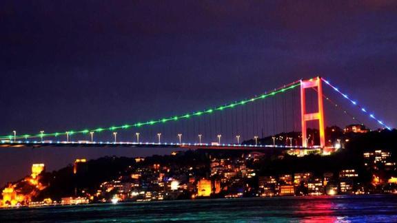 AA'nın aktardığı habere göre, önemli günlerde renk ve ışık gösterileriyle aydınlatılan köprüler, bu kez Azerbaycan'da cumhuriyetin ilanının 103. yıl dönümü dolayısıyla kutlanan "Cumhuriyet Günü" kapsamında kardeş ülkenin bayrağının renklerine büründü.