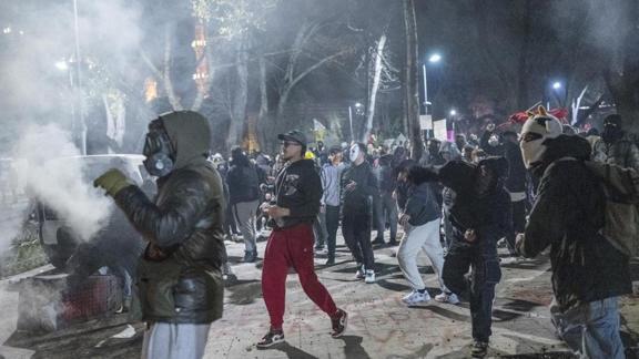 Polis hattına saldırarak taşkınlık gösteren kalabalığa hitaben ses yayın araçları marifetiyle duyabileceği şekilde uyarılar yapıldığının aktarıldığı iddianamede, dağılmamakta direnmeleri üzerine alanda bulunan kalabalığa orantılı müdahale edildiği ve şüphelilerin yakalamasının yapıldığı kaydedildi. İddianamede ayrıca, ekiplere kalabalık tarafından görüşü engellemek maksadıyla lazer tutulduğu, ayrıca taş, sopa, şişe, yanıcı ve yakıcı maddeler ile sert cisimler atıldığı da kaydedildi.