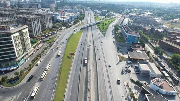 E-5 karayolu Zeytinburnu Cevizlibağ mevkiinde havadan dron ile çekilen görüntüde Bakırköy ve Ankara yönündeki şeritlerde trafiğin olmadığı görüldü.