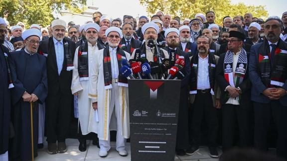 Erbaş, namazın ardından yaptığı konuşmada, bütün dünyanın gözü önünde Filistin'de bir milletin yok edildiğini söyledi.