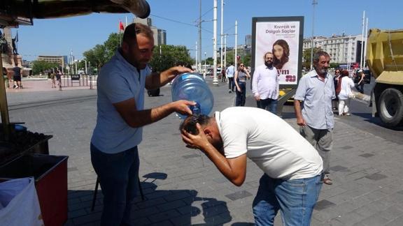 Megakent İstanbul'da etkili olan sıcak hava vatandaşlara zor anlar yaşatıyor. Taksim Meydanı'nda kimisi şemsiyle gezerken, kimisi ise gölgelik alanlarda dinlenmeyi tercih etti.
