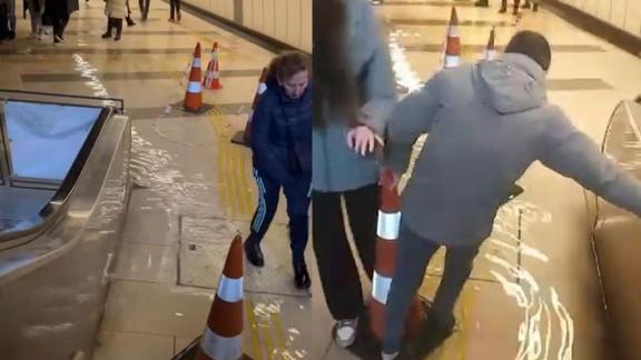 Küçükçekmece Cennet Mahallesi metrobüs durağı alt geçidini su bastı. Metrobüsten inerek alt geçide gelen vatandaşlar zor anlar yaşadı.