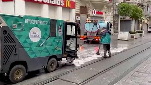 Belediyenin paylaşımında, "İstiklal Caddesi'ndeki temizlik çalışmaları İBB uhdesinde olmasına rağmen ekiplerimizce caddeye çıkan sokaklarda çalışma gerçekleştiriyoruz. Suyun akış yönü caddeye doğru olduğu için caddeye gelen çöpler süpürme araçlarımızla eş zamanlı olarak temizlenmektedir" denilmişti.