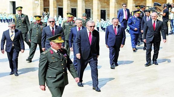 Misak-ı Milli Kulesi Anıtkabir Özel Defteri'ni imzalayan Erdoğan "Kahraman ordumuz milletimizegüven aşılamaktadır. Türkiye Cumhuriyetibölgesinde istikrar abidesi olarak yükselişini sürdürmektedir" dedi.