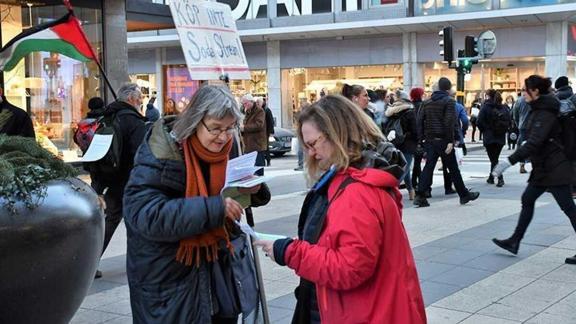 AA'nın haberine göre, aktivist ve akademisyenlerin kurduğu İsveç Filistinliler Derneğince Medborgare Meydanı'da yapılan eylemde, İsrail mallarının alınmaması ve İsrail'e tatile gidilmemesi çağrısı yapan broşürler dağıtıldı.