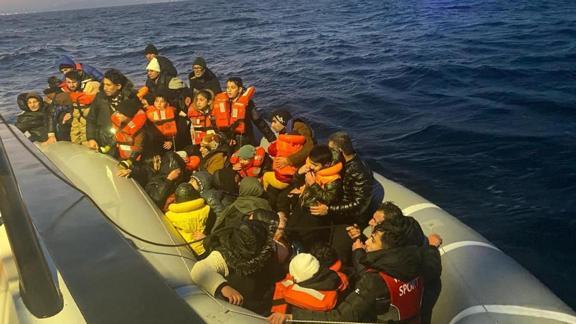 Ekipler, Yunanistan unsurlarınca Türk kara sularına itilen iki lastik bottaki 34'ü çocuk 92 düzensiz göçmeni kurtardı.
