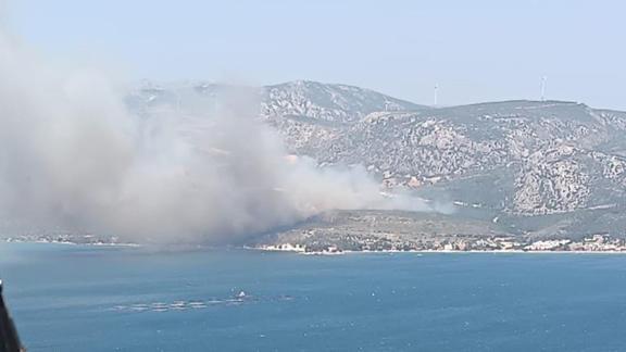 İhbar üzerine bölgeye İzmir Orman Bölge Müdürlüğüne ait 2 uçak, 6 helikopter, 14 arazöz, 4 su ikmal aracı ve 3 dozer sevk edildi.