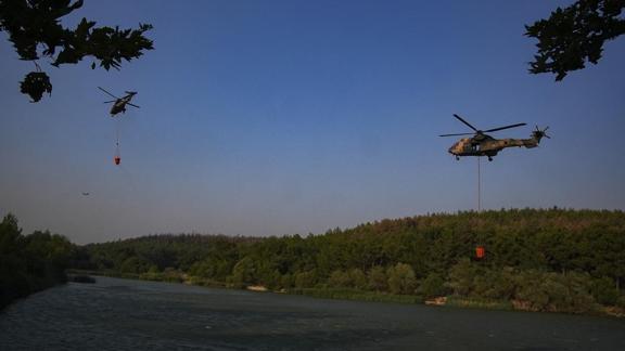 İhbar üzerine yangının söndürülmesi için bölgeye İzmir Orman Bölge Müdürlüğüne ait uçak, helikopter ve kara ekipleri sevk edildi.
