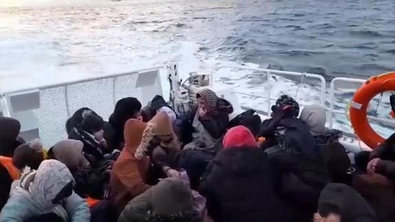 Foça ilçesi açıklarındaki Orak Adası üzerinde düzensiz göçmen olduğu ve yardım talebinde bulunduğu bilgisi üzerine de bölgeye bot ekibi sevk edildi.