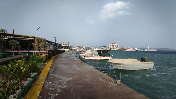Öte yandan Karaburun ilçesi Mordoğan Mahallesi'nde de deniz taştı, balıkçı barınağı ve bazı bahçeler su altında kaldı.