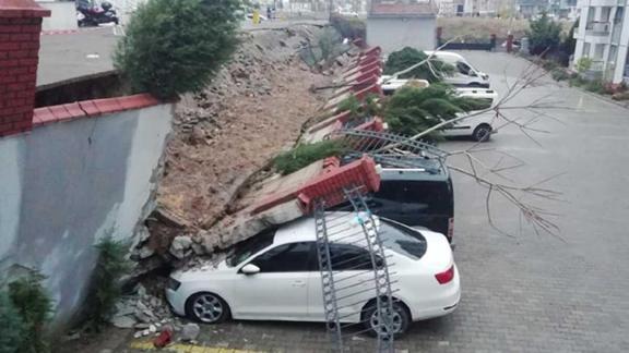 Sitede yaşayan Cemal Kolçaklı, "Yağmur sonrası istinat duvarı çöktü, araçlarda maddi hasar oluştu. Dışarıda kimse olmadığı için bir can kaybı ya da yaralanma olayı yaşanmadı” diye konuştu.