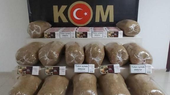 Adreslerde ve bir araçta yapılan aramada 10 bin 400 boş makaron (filtreli sigara kağıdı), 4 bin dolu makaron, 11 kilogram kıyılmış tütün, 8 sigara sarma makinesi, 2 tüfek ve 2 kurusıkı tabanca ele geçirildi.
