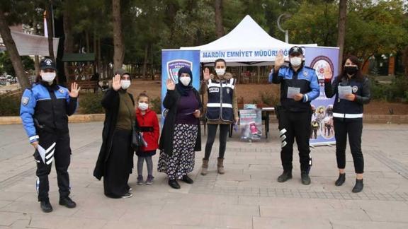 Mardin, Niğde, Manisa ve Kayseri'de polis ve jandarma ekipleri tarafından kurulan standlarda, vatandaşlara, kadınların ve çocukların maruz kaldığı şiddet, taciz gibi kötü eylemleri engellemek amacıyla kullanılan KADES uygulaması hakkında bilgi veriliyor.