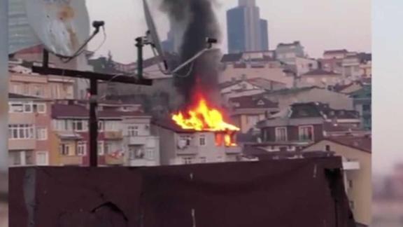 Çeliktepe Mahallesi Has Sokak'ta bulunan binanın çatısında saat 17.20 sıralarında henüz bilinmeyen bir nedenle yangın çıktı. Kısa sürede büyüyen yangında binanın çatısı alev alev yandı. Zaman zaman patlama sesleri de duyuldu.