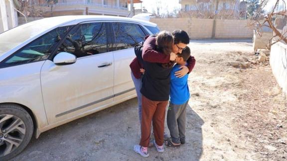 Kurtardığı aile ve çocuklarla depremin yıl dönümünde buluşan Enes Lekesiz, "Türkoğlu ilçesinde Miray ve Lütfi kardeşlerimizin yanındayız. Depremde tespit ettiğim alanlardan biriydi burası. İçinde insan olan ve ses gelen bir yerdi. Tüm çabalarıma rağmen ulaşamadım alt kattaydı ve tamamen ev çökmüştü. Çevredekilerin ekipman desteği ile zemine bir delik açarak ulaşmayı planladım. Sonrasında bir enkaz alanına gittim ve tekrar geldiğimde o ekipmanlar gelmişti. Ancak jandarma da buradaydı ve anne babaya ulaşmak üzereydi. Ben de onlara önce çocukları çıkarmamızı önerdim. Sonra onları bıraktık ve yaptığım tespitlerle bir delik ve tünel açarak önce çocukları ve sonrasında anne ve babasını sağ salim çıkardık. Deprem sonrası kendilerini ziyaret etmeye devam ediyorum. Onlar her zaman benim aklımda ve kalbimdeler o günler geçince böyle güzel hatıraları kalıyor" dedi.