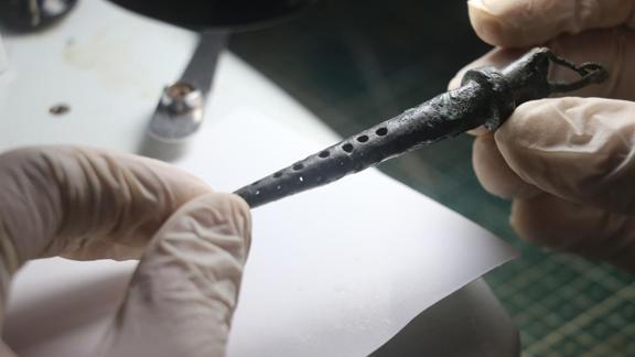 Çelikbaş, filtre olarak kullanılan bronz objenin konik formda olduğunu ifade ederek, "Üzerindeki taşıma halkası, aslında antik dönemde insanların bronz objeyi bir sefer kullanmadığını, kullandıktan sonra temizlenerek muhafaza altına alındığını ve defalarca kullanıldığını göstermekte. Konik bronz objenin üzerinde delikler var. Bu delikler filtre görevini görüyor." diye konuştu.