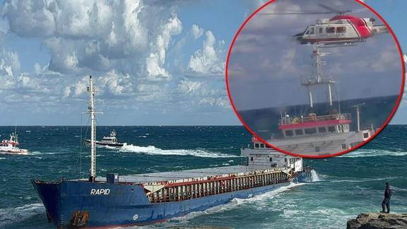 Kuru yük gemisi daha sonra kıyıdaki kayalık bölgede karaya oturdu. 7 kişilik mürettebatı bulunan geminin kurtarılması için ekiplerce çalışma başlatıldı.