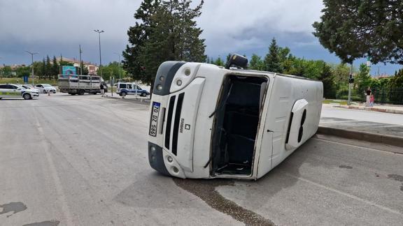 Özel eğitim öğrencilerini taşıyan Ü.E. idaresindeki 70 DZ 586 plakalı okul servis aracı, Yunuskent Mahallesi Valilik Kavşağı'nda Ö.B. yönetimindeki 33 AUD 983 plakalı kamyonetle çarpışarak devrildi.