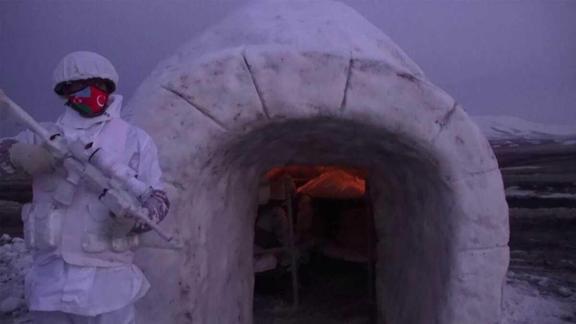 Kesme kalıp tekniği kullanılarak, 5 saatte yapılan, hafif silahlara karşı koruma sağlayan iglolarda kalan askerler, görevlerini başarıyla tamamladı. En düşük hava sıcaklığının sıfırın altında 10 dereceyi gösterdiği bölgede iglolarda kalan askerler, mum ışığında her türlü zorluğa karşı tatbikatı sürdürdü.
