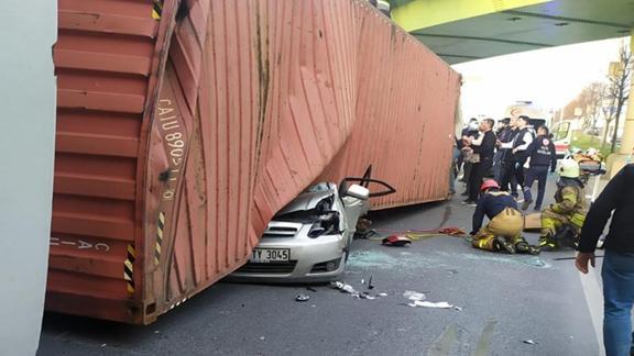 Yeşilyurt Mahallesi Rauf Orbay Caddesi'nde saat 18.45 sıralarında kağıt malzeme yüklü 34 ER 260 plakalı TIR, Marmaray köprüsüne çarparak yanında ilerleyen 34 TY 3045 plakalı otomobilin üzerine devrildi.