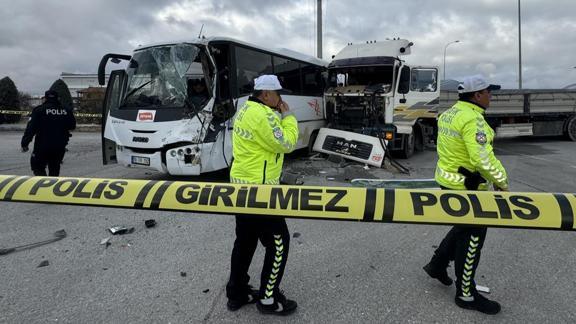 Kaza, Karaman-Ereğli kara yolu üzerindeki kavşakta meydana geldi. Edinilen bilgiye göre, Karaman'dan organize sanayi bölgesinde faaliyet gösteren bir bisküvi fabrikasına işçi taşıyan Mustafa Ç. idaresindeki 70 FV 192 plakalı midibüs, kavşakta dönüş yapan Hüseyin A. idaresindeki 03 SE 547 plakalı çelik demir yüklü tırla çarpıştı.