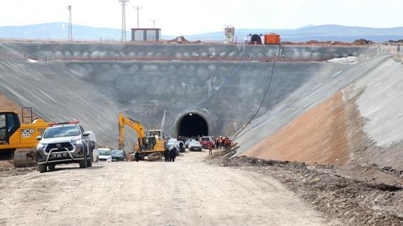 Yapımı devam eden Kayseri-Yerköy Hızlı Tren Hattı'nda bulunan Kocasinan ilçesi Himmetdede mevkisindeki tünel inşaatında kaya parçaları düştü.