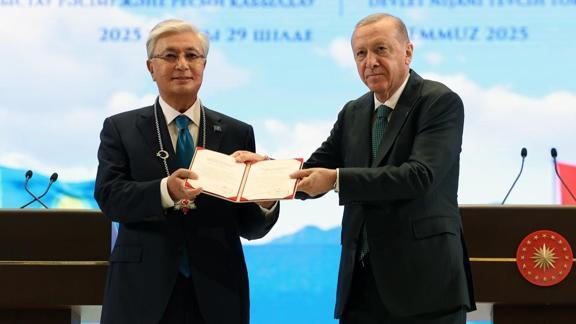 Devlet Nişanı'nın ayrıca, Kazakistan-Türkiye arasındaki stratejik işbirliğini daha da güçlendirmeye yönelik karşılıklı yönelimin bir göstergesi olduğunu söyleyen Kazakistan Cumhurbaşkanı, şöyle devam etti: