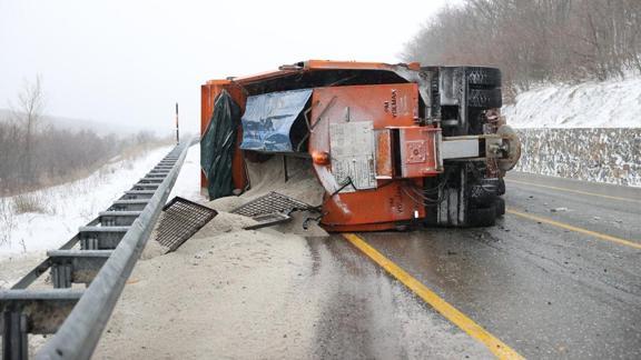 Bölgede çalışmalarını sürdüren Karayolları 15. Şube Şefliğine ait kar küreme aracı Mahyatepe mevkisinde devrildi.