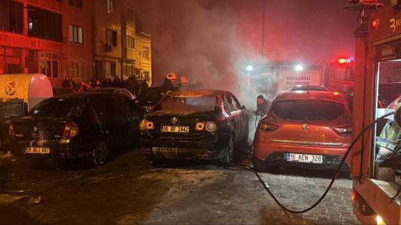 Kısa sürede büyüyen yangın, park halindeki iki otomobile sıçradı, araçlar zarar gördü.