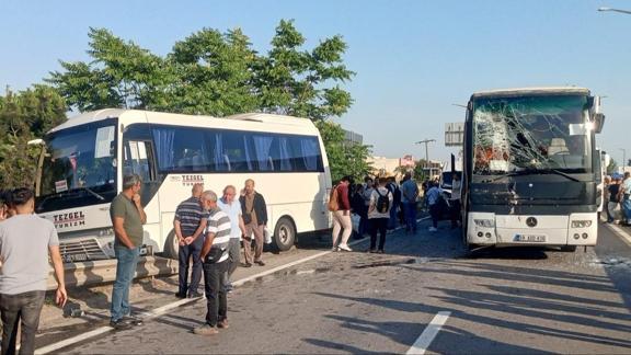 İstiklal Mahallesi'nde fabrika işçilerini taşıyan servis minibüsü, midibüs ve otobüslerin de arasında bulunduğu 9 araç çarpıştı.