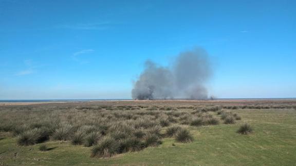 Kızılırmak Deltası Kuş Cenneti'nde sazlık alandaki yangına müdahale ediyor.