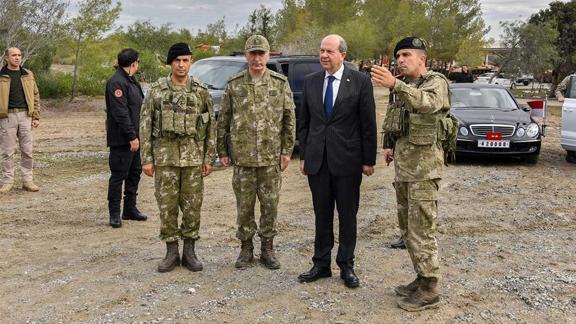Kuzey Kıbrıs Türk Cumhuriyeti Cumhurbaşkanı Ersin Tatar, Kıbrıs Türk Barış Kuvvetlerinin 14'üncü Zırhlı Tugay Komutanlığını ziyaret ederek tank atış alanında faaliyetlere ilişkin bilgi aldı.