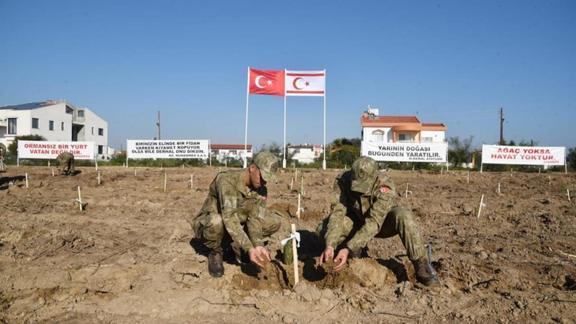 Kuzey Kıbrıs Türk Cumhuriyeti (KKTC) Güvenlik Kuvvetleri Komutanlığında (GKK) görevli personel ve vatani görevini yapan askerlerin, İskele'nin Mersinlik bölgesinde geçen yıl yanan ormanlık alana 5 bin fidan diktikleri bildirildi.