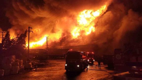 Kocaeli'nin Gebze ilçesinde lojistik fabrikasında çıkan yangını söndürme çalışmaları 3 saat boyunca devam ediyor. Alevler diğer fabrikalara da sıçrarken, yangının büyüklüğü havadan görüntülendi.