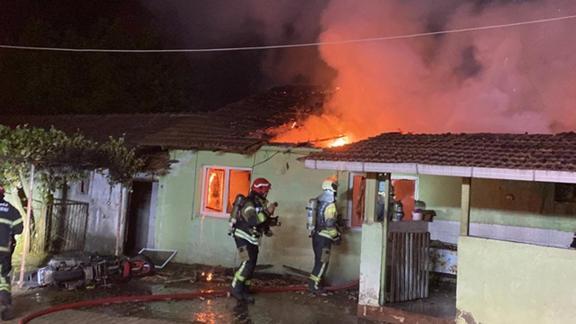 Öte yandan, bir itfaiye erinin yanan evin duvarında bulunan Türk bayrağını aldığı anlar ise kameraya yansıdı. İki evin de kullanılamaz hale geldiği yangınla ilgili soruşturma başlatıldı.
