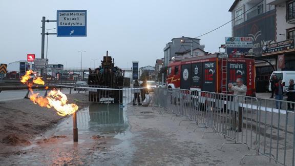 Dumlupınar Mahallesi D-100 kara yolu yan yol üzerinde Ulaştırma ve Altyapı Bakanlığınca yürütülen Kocaeli Körfezray Metro Projesi sondaj çalışmasının 45. metresinde gaz çıkışı oldu.