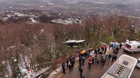 Kayak merkezi yolu Sisli Vadi mevkisinde bir belediye otobüsü şarampole devrildi.