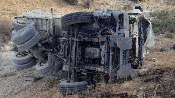 Uğur A'nın kullandığı 42 BV 238 plakalı hafriyat kamyonu, kara yolu çalışması yapılan Tepeköy mevkisinde şarampole devrildi.