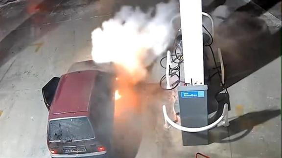 Görüntülerde; park halinde olan otomobilin alev aldığı, görevlilerin ise yangın söndürme tüpleriyle alevlere müdahale ettiği, diğer araç sürücülerinin de panik halinde akaryakıt istasyonundan ayrılmaya çalıştığı anlar yer aldı.