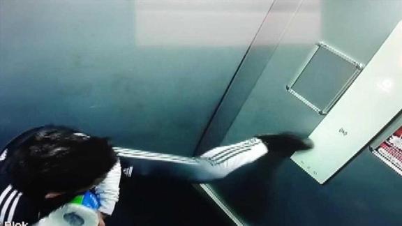 Koronavirüs var diye ayağıyla bastı! Tepki çeken asansör görüntüleri