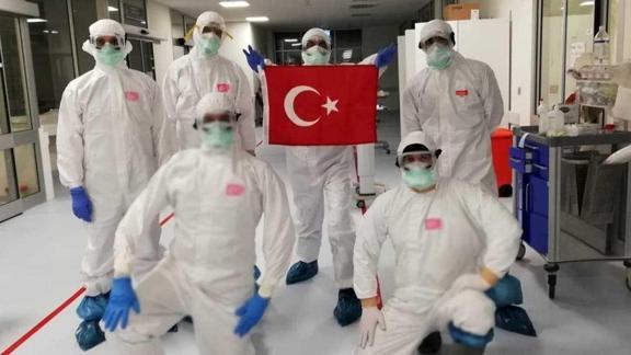 Sağlıkçılar, video hazırlayarak, tek tek asker selamı verdi daha sonra Türk bayrağı açarak, bayramı kutladı.