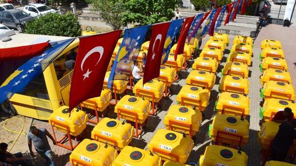 Konuşmaların ardından, TİKA tarafından "Mamuşa Belediyesi Çiftçilerine Tarımsal Mekanizasyon Desteği Sağlanması" projesi kapsamında, 200 çiftçiye 400 litrelik ilaçlama makinesi dağıtıldı.