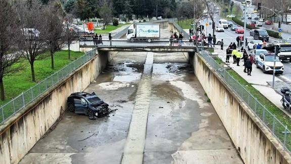 Kazayı anlatan görgü şahidi Ahmet Sevinç arabanın kazanın ardından dereye uçtuğunu, hafif yaralı kadının araçtan çıktığını söyledi.