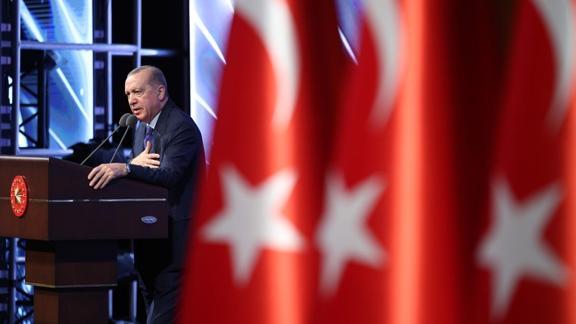 Yapay zeka mahsulü şiirlerin, kitapların, şarkıların, resimlerin, sinema filmlerinin yüz milyonlara ulaştığını ve gerçekle sanal arasındaki farkın büyük oranda kaybolduğu bugünlerde kendilerini yarın neyin beklediğini tam olarak bilemediklerini belirten Erdoğan, "Şurası bir gerçek ki milli kimliği, milli kültürü, değeri, ideali, erdemi, ahlakı dışlayan her trend yüzeyselliğe mahkum olmaktan kurtulamaz. Hiçbir derinliği, özgünlüğü olmayan, günlük üretilip, günlük tüketilen işlerle maalesef biz de bu küresel fırtınanın önünde duramayız." dedi.
