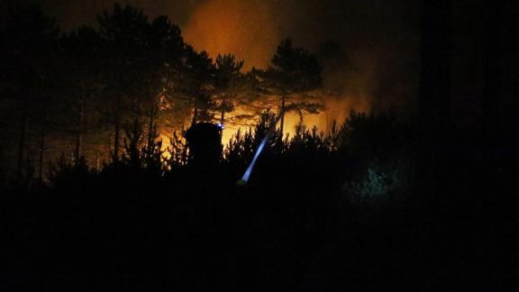 Ekiplerin yangına müdahalesi gece görüşlü helikopterlerin desteğiyle sürüyor.